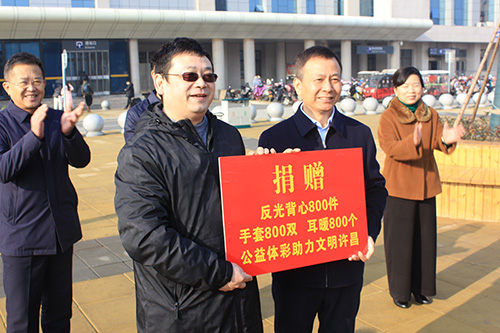 2019年12月19日,由河南省体育彩票管理中心许昌分中心发起的“公益体彩 助力文明许昌”许昌市环卫工作者捐赠活动,在许昌市火车站站前广场举行。